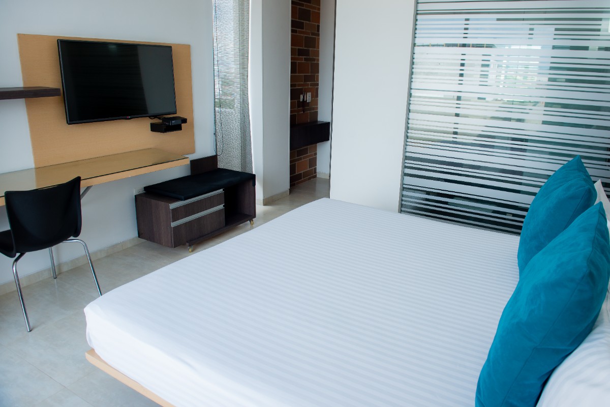 La Junior Suite con vista a la ciudad ofrece un espacio amplio y elegante, estupenda para parejas que buscan confort. Equipada con cama Queen o King para disfrutar cómodamente la vibrante vida de Cúcuta.